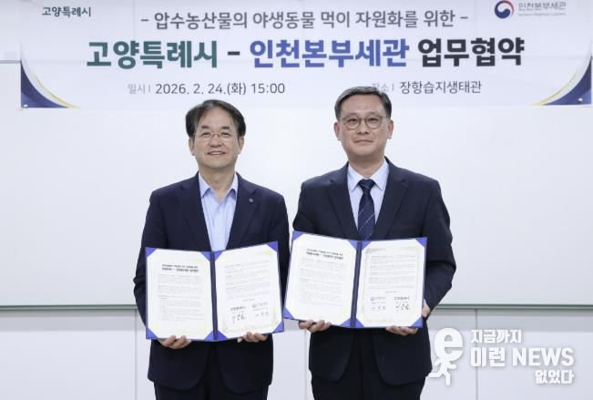 이런뉴스(e-runnews) 김삼성 기자 | 고양특례시와 인천본부세관은 지난 24일 장항습지생태관에서 장항습지에 서식하는 야생동물의 생태환경 지원을 위한 업무협약을 체결했다고 밝혔다.