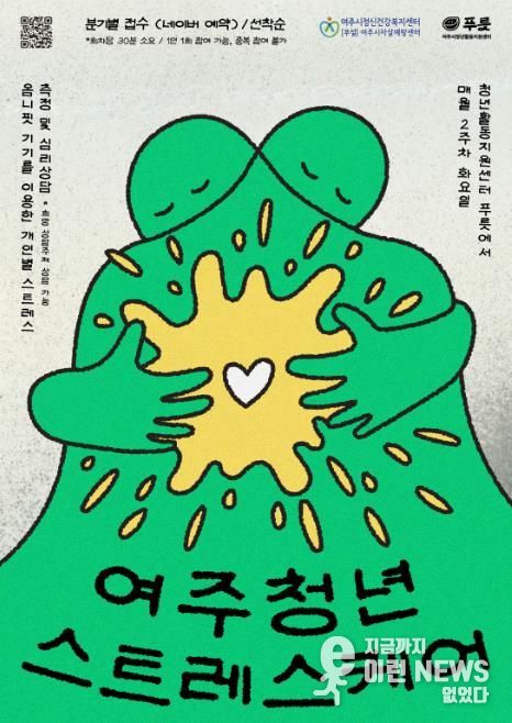 이런뉴스(e-runnews) 김삼성 기자 | 여주시청년활동지원센터 푸릇은 오는 3월부터, 여주시정신건강복지센터와 함께하는 협력사업으로'여주 청년 스트레스 케어(이하 여·스·케)'프로그램을 진행한다고 밝혔다.