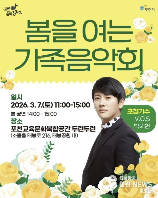 이런뉴스(e-runnews) 김삼성 기자 | 포천시는 오는 3월 7일 포천시 교육문화복합공간 두런두런에서 ‘포천음악창작소, 봄을 여는 가족음악회’를 개최한다.
