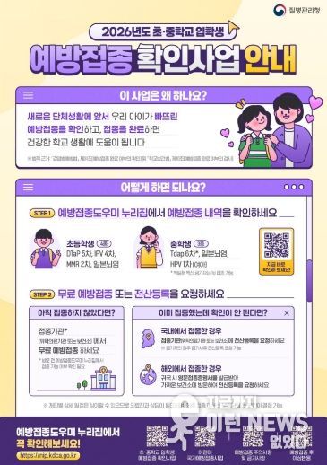 평택시 송탄보건소 관계자는 “초·중학교 입학생은 단체생활로 감염병 확산에 취약한 만큼 입학 전 예방접종 기록을 확인하고 필요한 접종을 완료해 안전한 학교생활을 시작하길 바란다”라고 전했다.