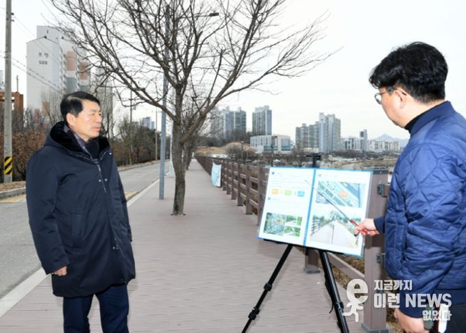 이런뉴스(e-runnews) 김삼성 기자 | 구리시는 24일 하천변 둔치의 시민 이용 활성화와 보행 편의 증진을 위해 왕숙천 제방 내에 조성한 관망 산책로(데크) 설치 구간에 대한 현장점검을 했다고 밝혔다.