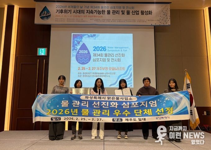 이런뉴스(e-runnews) 김삼성 기자 | 화성시 맑은물사업소가 25일 제주도에서 열린 '제34회 물 관리 선진화 심포지엄'에서 ‘2026 물 관리 최우수기관’으로 선정됐다고 밝혔다.