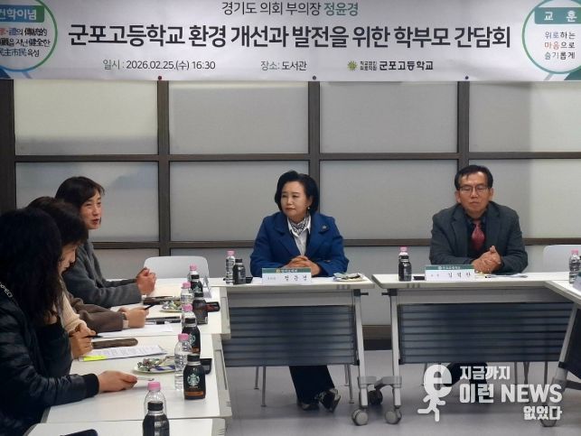이런뉴스(e-runnews) 김삼성 기자 | 경기도의회 정윤경 부의장(더불어민주당, 군포1)은 2월 25일 군포고등학교 도서관에서 교직원 및 학부모들과 ‘학교 환경 개선과 발전을 위한 학부모 간담회’를 개최하고 학교 현안 전반에 대해 의견을 나눴다.