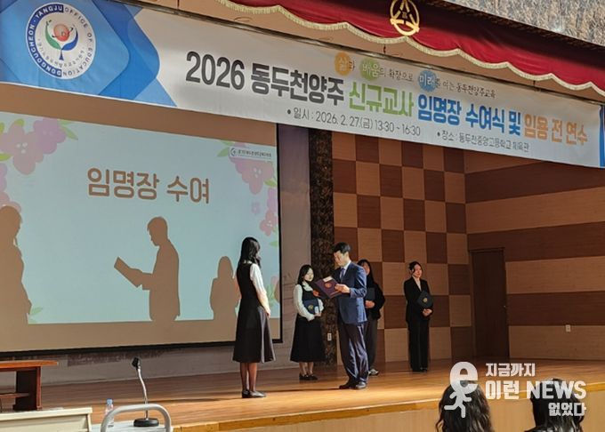 이런뉴스(e-runnews) 김삼성 기자 | 동두천양주교육지원청은 2026년 3월 1일자 신규 발령 예정 교사 282명을 대상으로 동두천중앙고등학교 체육관에서'2026 동두천양주교육지원청 신규교사 임명장 수여식 및 임용 전 연수'를 개최했다.