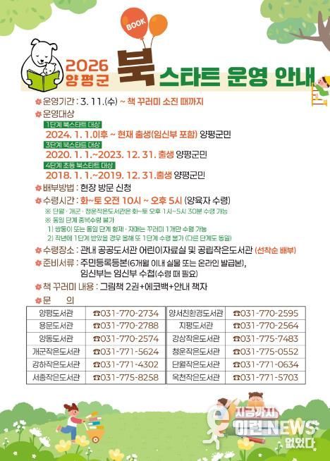 이런뉴스(e-runnews) 김삼성 기자 | 양평군은 오는 11일부터 ‘2026년 북스타트 사업’을 본격 운영한다고 밝혔다.