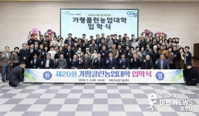 이런뉴스(e-runnews) 김삼성 기자 | 가평클린농업대학이 3일 농업기술센터 3층 대강당에서 ‘2026년 제20회 가평클린농업대학 입학식’을 열고 76명의 신입생을 맞았다. 입학식에는 농식품학과, 스마트농업과, 농촌관광과 입학생과 내빈 및 관계자 등 90여명이 참석해 새로운 출발을 축하했다.