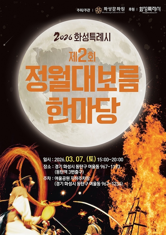 ‘2026 화성특례시 제2회 정월대보름 한마당’은 전통과 현재, 그리고 화성의 새로운 행정 출발이 어우러지는 축제다. 달빛 아래 모인 시민들의 염원이 화성특례시의 내일을 더욱 밝히는 불씨로 활활 타오를 전망이다.