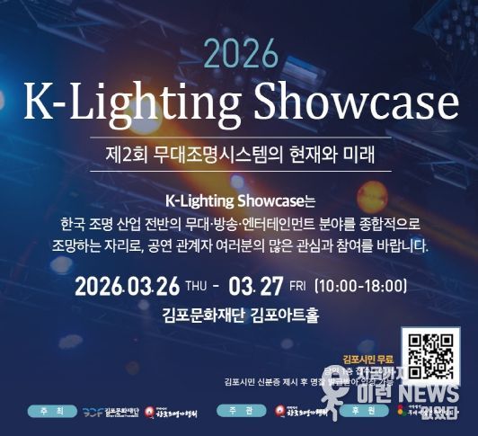 이런뉴스(e-runnews) 김삼성 기자 | (재)김포문화재단(대표이사 이계현)은 김포아트홀에서 오는 3월 26일부터 27일까지 이틀간 국내 무대조명 산업의 현재와 미래를 한자리에서 조망하는‘2026 K-Lighting Showcase’를 개최한다고 밝혔다.