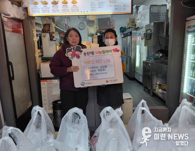 이런뉴스(e-runnews) 김삼성 기자 | 의정부시 송산1동주민센터는 2월 27일 60계치킨 고산점이 관내 저소득 한부모가정을 위해 치킨 10마리를 후원하며 따뜻한 나눔을 실천했다고 밝혔다.
