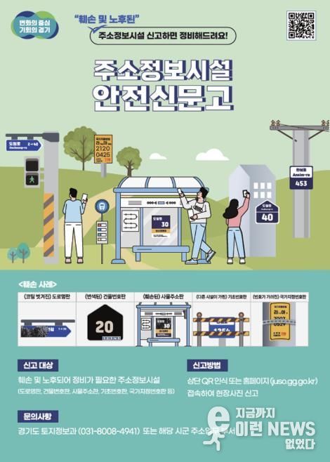 아울러 스마트 주소정보시설에 부착된 QR코드를 통해 산불방지, 찾아가는 정약용 도시대학 등 다양한 시책 및 홍보자료를 제공해 디지털 기반의 생활 밀착형 정보 서비스도 지속 확대한다. 주소정보시설이 훼손되거나 노후해 정비가 필요할 경우 ‘국민신문고’ 및 ‘경기도 주소정보시설 안전신문고’를 통해 신고할 수 있다.