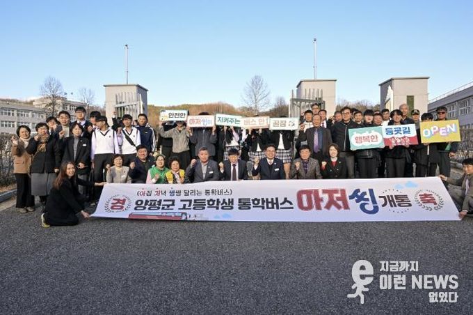 이런뉴스(e-runnews) 김삼성 기자 | (재)양평군교육발전위원회는 지난 3일 양동고등학교에서 고등학교 통학버스 ‘아저씽’ 개통식을 개최했다고 밝혔다. 이번 통학버스 지원 사업은 양평군 내 고등학생들의 안전하고 편리한 통학 환경 조성을 위해 추진됐으며, 지역 학생들의 통학 불편 해소와 교육 여건 개선에 기여할 것으로 기대된다.
