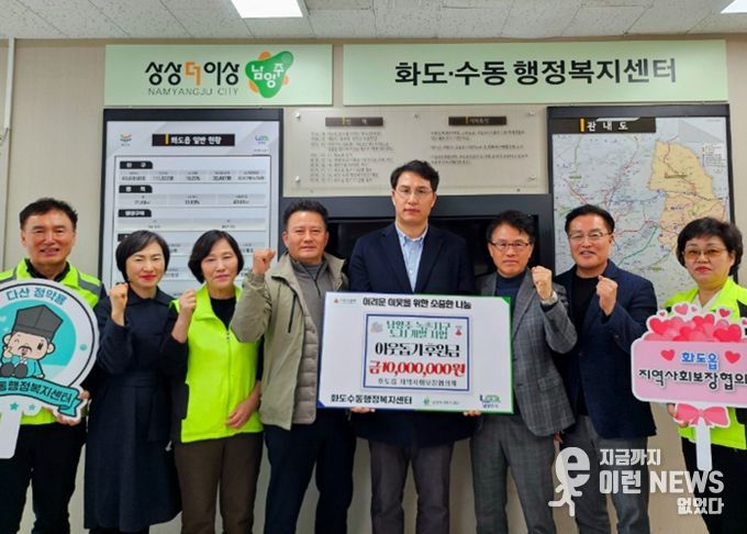 이런뉴스(e-runnews) 김삼성 기자 | 남양주시는 지난 4일 녹촌지구 도시개발사업 조합과 중흥토건㈜, ㈜성림그린산업이 화도읍 지역사회보장협의체에 관내 취약계층 가구를 위한 후원금 1,000만 원을 전달했다고 5일 밝혔다.
