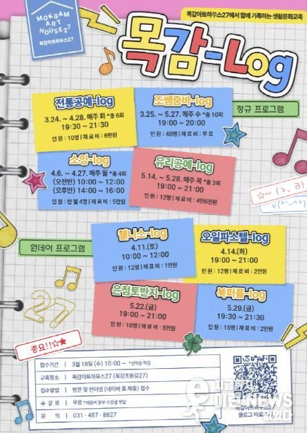 이런뉴스(e-runnews) 김삼성 기자 | 시흥시는 목감아트하우스27에서 운영하는 상반기 생활문화교육 ‘목감-로그(log)’ 참여자를 모집한다.