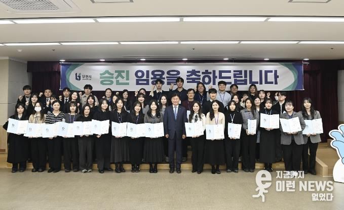 이런뉴스(e-runnews) 김삼성 기자 | 부천시는 지난 5일 부천시청 소통마당에서 3월 수시인사에 따른 임용장 수여식을 열었다. 이날 수여식은 승진자들의 노고를 격려하고 새로운 직무에서의 책임과 역할을 다짐하는 자리로 마련됐다.