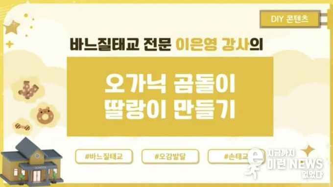 또한 3강은 엄마의 소근육 운동과 함께 아기의 두뇌 발달과 정서적 교감을 돕는 손수 제작(DIY) 손태교 교육으로 진행된다. 양평군보건소는 선착순 40명을 모집해 손수 제작(DIY) 바느질 태교 재료(곰돌이 딸랑이 만들기)를 자택으로 배송할 예정이며, 참여자는 동영상 강의를 보며 2주간 교육을 받을 수 있다.