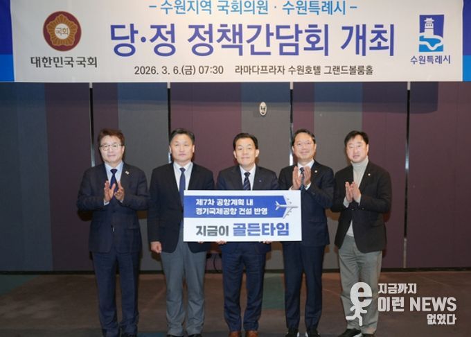 이런뉴스(e-runnews) 김삼성 기자 | 이재준 수원특례시장은 6일 라마다프라자 수원호텔에서 열린 지역 국회의원들과 당·정 정책간담회에서 “제7차 공항개발 종합계획에 ‘경기국제공항’ 건설 내용이 반영될 수 있도록, 경기도와 협의해 달라”고 요청했다.