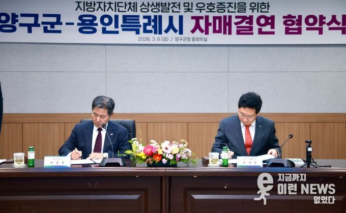 이런뉴스(e-runnews) 김삼성 기자 | 용인특례시는 6일 강원특별자치도 양구군과 자매결연을 하고, 두 도시의 교류와 발전을 위해 적극 협력하기로 했다.