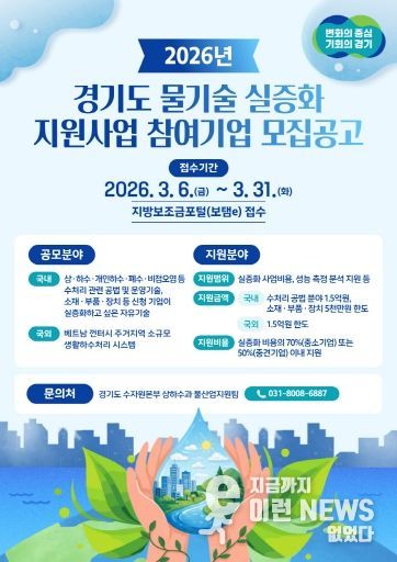 이런뉴스(e-runnews) 김삼성 기자 | 경기도가 ‘2026년 경기도 물기술 실증화 지원사업’ 참여 기업을 공개 모집한다.