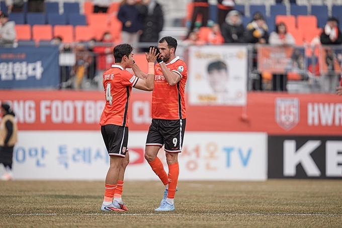 그러다 전반 16분 화성이 균형을 깨뜨렸다. 김해 골라인 근처 오른쪽 측면에서 김대환이 낮게 띄운 크로스를 페트로프가 문전에서 침착하게 왼발로 밀어 넣으며 선제골을 기록, 2026시즌 화성FC 첫 골의 주인공이 됐다.