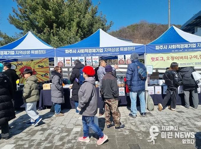 이런뉴스(e-runnews) 김삼성 기자 | 파주시는 사회적경제기업의 판로 확대와 지역경제 활성화를 위해 케이(K)리그2 파주 프런티어 에프시(FC) 홈경기와 연계한 ‘사회적경제기업 지역상생 특별장터’를 지난 7일 처음 개최했다.
