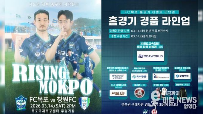 이런뉴스(e-runnews) 김삼성 기자 | FC목포가 K3리그 홈 개막전의 아쉬운 무승부를 뒤로하고 창원FC를 상대로 오는 14일, 시즌 첫 승에 도전한다.