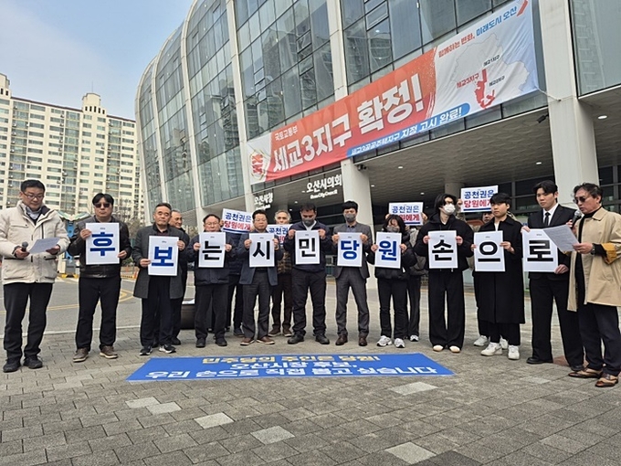 ‘더불어민주당을 사랑하는 오산시 주권 당원들’은 11일 오후 오산시청 앞에서 기자회견을 열고 차기 오산시장 후보 선출 과정에서 전략공천을 배제하고 당원 참여 중심의 경선을 실시해 줄 것을 당 지도부에 공식 건의했다.