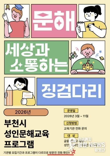 오미경 부천시 평생교육과장은 “성인문해교육을 통해 배움의 기회를 놓친 시민들이 다시 학습의 길로 나아갈 수 있도록 돕겠다”며 “누구나 소외됨 없이 배우고 성장할 수 있는 평생학습도시 부천을 만들어 가겠다”고 말했다.
