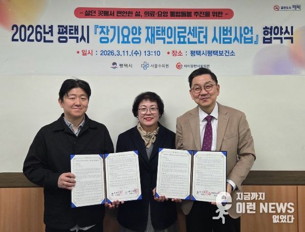 이런뉴스(e-runnews) 김삼성 기자 | 평택시는 지난 11일 의료서비스 접근성을 높이고 지역사회 의료·통합돌봄 체계 강화를 위한 장기요양 재택의료센터 시범사업 업무 협약을 체결했다고 밝혔다.