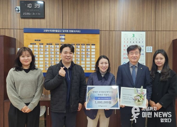 이런뉴스(e-runnews) 김삼성 기자 | 고양누리새마을금고와 고양시원흥종합사회복지관은 지난 11일, ‘2026년 행복한 우리 동네 복지사업’추진을 위한 후원금 전달식을 진행했다.
