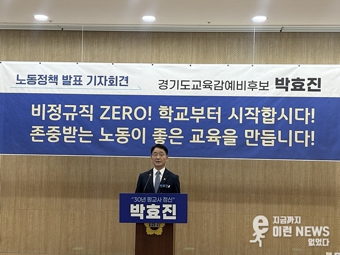 이런뉴스(e-runnews) 김삼성 기자 | 학교 현장 전문가 박효진 경기도교육감 예비후보가 18일 오전 기자회견을 열고 “비정규직 ZERO, 학교부터 시작하겠다”며 학교 내 노동 차별 해소를 핵심으로 한 노동정책을 발표했다.