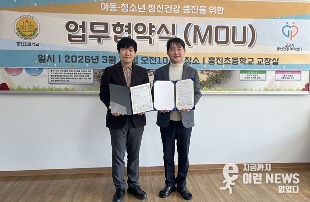 이런뉴스(e-runnews) 김삼성 기자 | 군포시정신건강복지센터는 12일 흥진초등학교와 아동·청소년의 정신건강증진을 위한 업무협약(MOU)를 체결했다고 밝혔다.