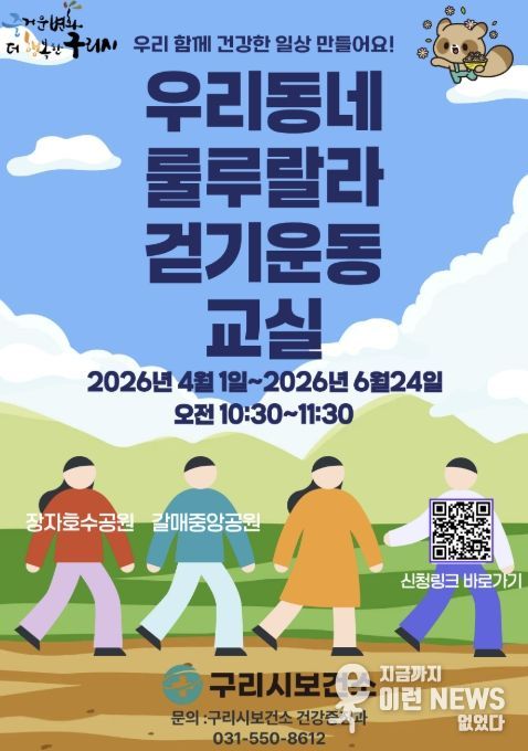 백경현 구리시장은 “걷기운동은 누구나 쉽게 시작할 수 있는 대표적인 신체활동”이라며 “룰루랄라 걷기운동교실을 통해 시민들이 즐겁게 운동하며 건강을 관리할 수 있도록 적극 지원하겠다”고 말했다.