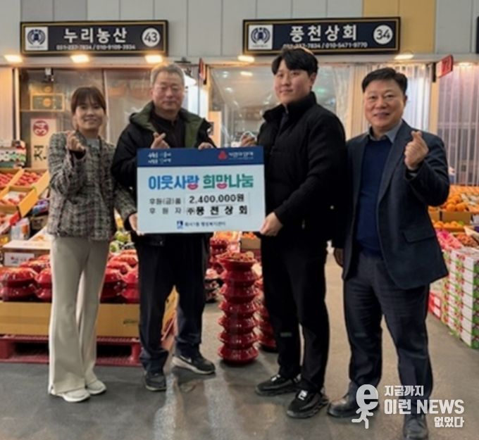 이런뉴스(e-runnews) 김삼성 기자 | 수원시 팔달구 화서1동은 수원시농수산물도매시장 내 풍천상회가 지역 내 저소득층 학생을 위한 따뜻한 나눔을 실천해 지역사회에 귀감이 되고 있다고 밝혔다.