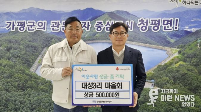 이번 성금은 지역 내 어려운 이웃을 돕기 위해 대성3리 주민들이 뜻을 모아 마련한 것으로, 청평면 내 취약계층 지원에 사용될 예정이다.