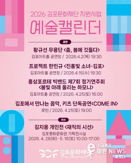 이런뉴스(e-runnews) 김삼성 기자 | (재)김포문화재단은 지역 예술인의 예술활동 및 창작을 지원하는 '2026년 김포예술활동지원사업'과 '경기예술활동지원사업 '모든예술31'' 최종 선정 결과, 총 74건의 다양한 예술활동이 김포 전역에서 펼쳐진다고 밝혔다.