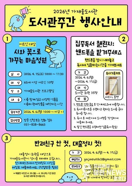 이런뉴스(e-runnews) 김삼성 기자 | 의정부가재울도서관은 4월 도서관주간을 맞아 시민들이 책과 도서관을 더욱 친숙하게 느낄 수 있도록 프로그램과 이벤트를 운영한다.