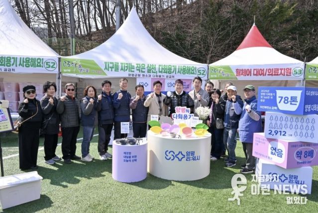 이런뉴스(e-runnews) 김삼성 기자 | 양평군은 지난 21일부터 22일까지 이틀간 열린 제27회 양평단월고로쇠축제에서 군이 자체 제작한 다회용기 12만 개를 사용해 약 5.6톤의 탄소를 감축했다고 밝혔다. 이는 소나무 약 45그루가 60년간 흡수하는 이산화탄소량에 해당하는 수준이다