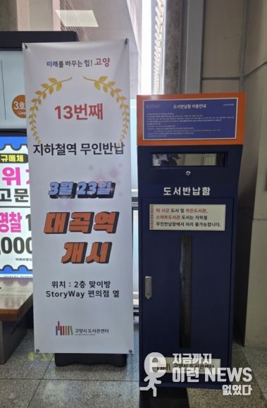 이런뉴스(e-runnews) 김삼성 기자 | 고양특례시 도서관센터는 시민들의 도서 반납 편의를 높이기 위해 대곡역에 무인도서반납함을 설치했다고 24일 밝혔다.