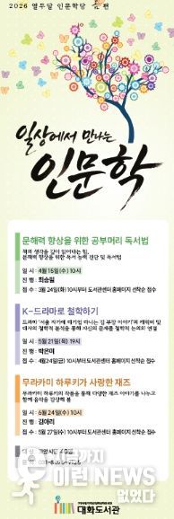 이런뉴스(e-runnews) 김삼성 기자 | 고양특례시 대화도서관의 대표 인문학 프로그램인 ‘열두달 인문학당’이 오는 4월부터 ‘일상에서 만나는 인문학’이라는 주제로 진행된다.