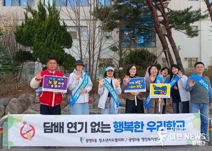 이런뉴스(e-runnews) 김삼성 기자 | 광명시 광명5동 청소년지도협의회는 지난 23일 광남중학교 정문 일대에서 청소년들의 건강한 성장을 돕기 위한 ‘청소년 금연 캠페인’을 실시했다.