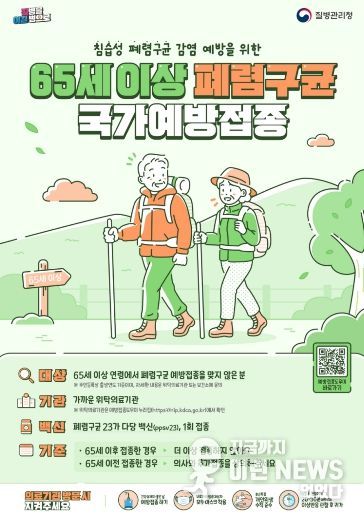 올해 접종 대상은 1961년 12월 31일 이전 출생자로, 다당백신 접종 이력이 없는 65세 이상 국민이다. 접종은 주소지와 관계없이 전국 지정 의료기관에서 1회 무료로 가능하며, 접종을 원하는 국민은 신분증을 지참하고 건강 상태가 양호한 날 가까운 지정 의료기관을 방문하면 된다.