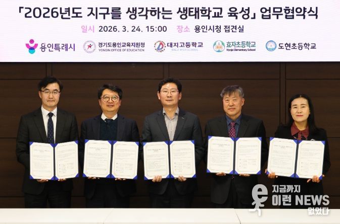 이런뉴스(e-runnews) 김삼성 기자 | 용인특례시는 24일 시청 접견실에서 용인교육지원청을 비롯해 3개 학교와 ‘지구를 생각하는 생태학교 육성사업’을 위한 협약을 맺었다.