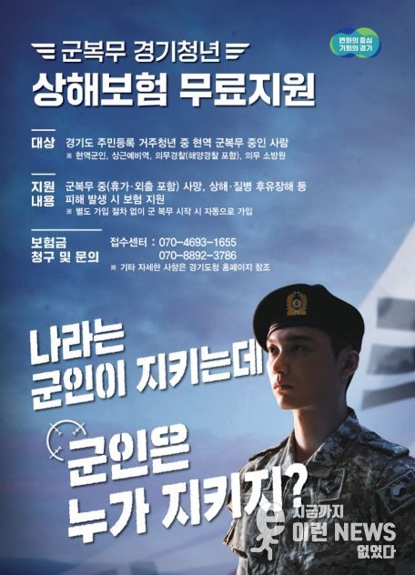 이런뉴스(e-runnews) 김삼성 기자 | 경기도가 군복무 중 발생할 수 있는 사고로부터 청년을 보호하기 위해 ‘군복무 경기청년 상해보험’ 지원 사업을 올해도 이어간다.