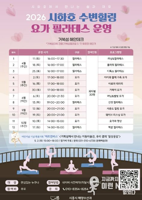 이런뉴스(e-runnews) 김삼성 기자 | 시흥시는 시화호 수변의 자연경관을 활용해 시민들에게 일상의 여유와 휴식을 제공하는 ‘시화호 수변 힐링 프로그램’을 오는 4월 11일부터 10월 17일까지 운영한다.