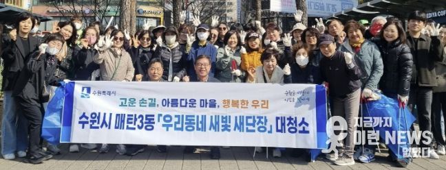 이런뉴스(e-runnews) 김삼성 기자 | 수원특례시 영통구와 매탄3동 행정복지센터는 지난 24일, 영통구청과 매여울 어린이공원 주변, 매탄 중심상가 일대에서 봄맞이 합동 대청소를 실시했다.