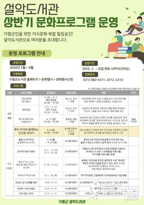 가평군도서관 관계자는 “이번 프로그램을 통해 주민들이 독서의 즐거움을 체감하고, 설악도서관에서 꿈과 희망을 키워가는 계기가 되길 바란다”고 말했다.