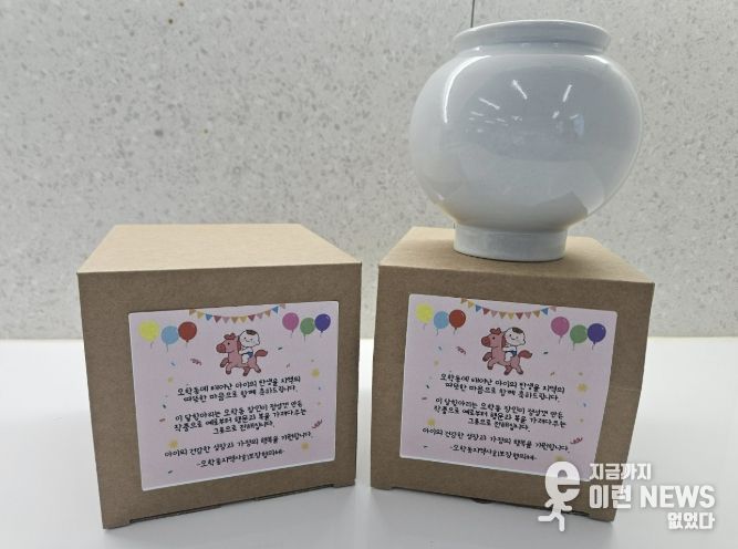 출생 신고를 마친 가정에 전달될 ‘소형 달항아리’는 예로부터 풍요와 복, 행운을 상징하는 전통 도자기다. 달항아리의 둥근 형태처럼 아이가 원만하고 건강하게 성장하기를 바라는 마음과 가정에 복이 가득 담기길 기원하는 메시지를 함께 전달할 예정이다.