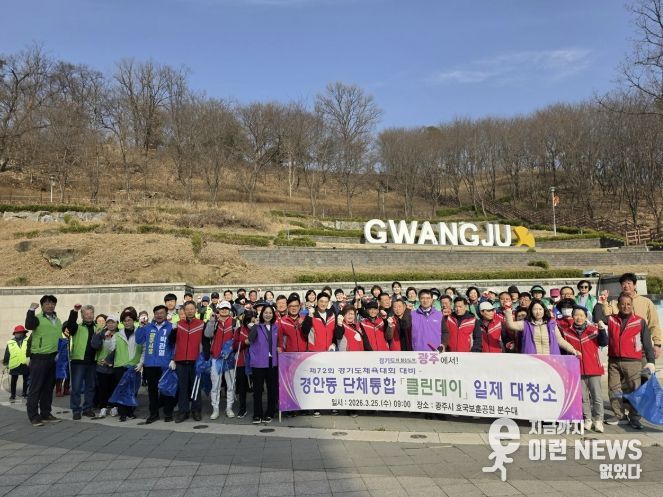 이런뉴스(e-runnews) 김삼성 기자 | 광주시 경안동은 지난 25일 지역 내 주요 단체가 참여한 가운데 ‘단체통합 국토 대청결 클린데이’를 실시했다.