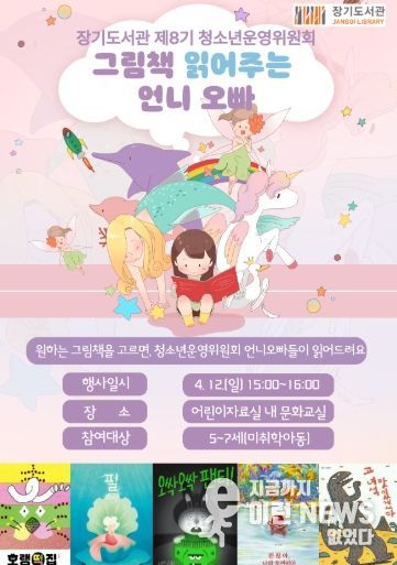 ‘그림책 읽어주는 언니 오빠’는 미취학 아동을 대상으로 별도의 사전 신청 없이 당일 현장에서 선착순으로 진행되며, ‘레진아트로 책갈피 만들기’는 김포시 초등학교 1~3학년 20명을 대상으로 3월 30일 오전 10시부터 장기도서관 홈페이지를 통한 사전 신청으로 운영된다.