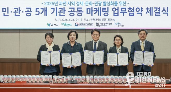 과천시는 지난 25일 한국마사회, 서울랜드, 국립과천과학관, 국립현대미술관과 함께 지역경제 활성화와 문화·관광 연계를 위한 공동 마케팅 업무협약(MOU)을 체결하고 협력 기반을 마련했다.